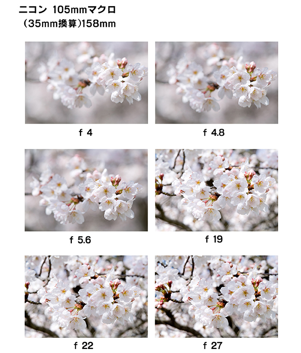 開放に近いほど、ボケは強くなり絞り値を大きくするほど被写界深度が深くなりピントの幅が広く見えてきます。マクロレンズや望遠レンズなど焦点距離の長いレンズの開放側はかなりボケやすく広角レンズは焦点距離が短く開放に近くてもボケにくい特徴があります。